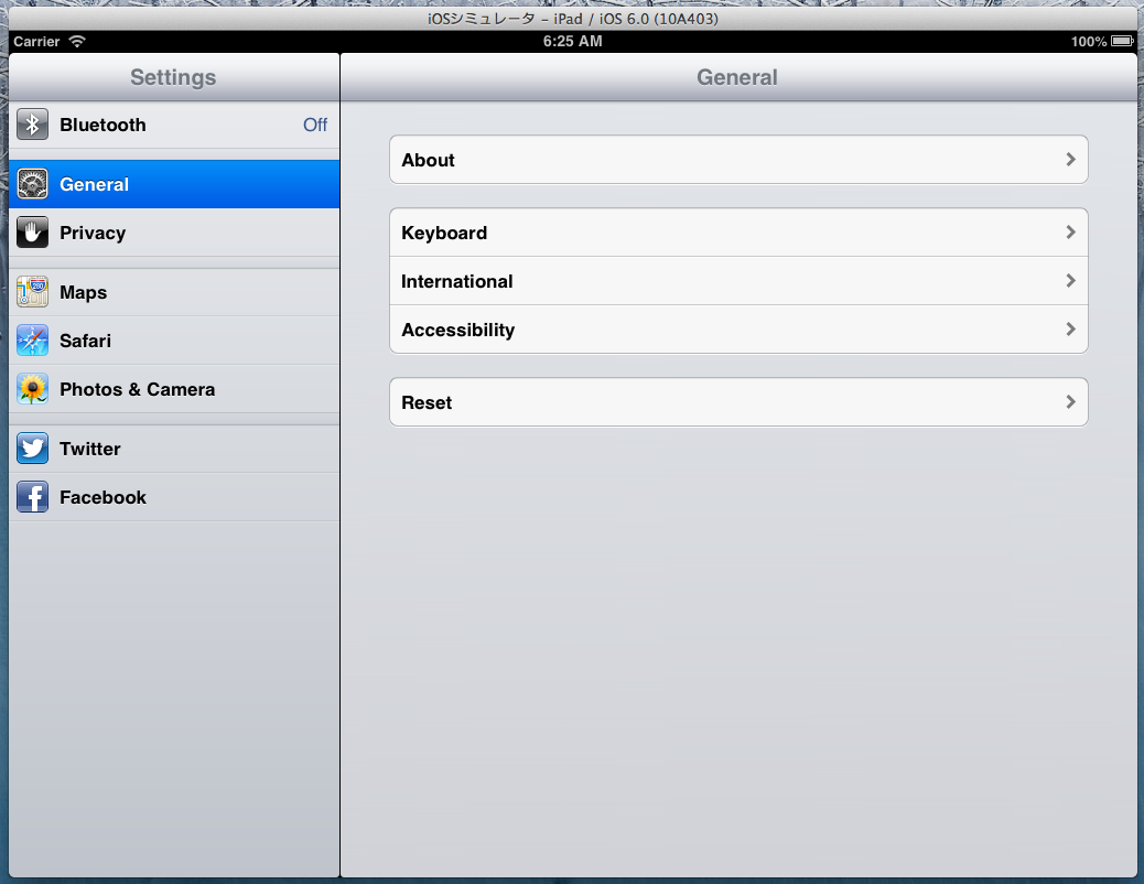 続いて、言語設定をします。Settingアイコンをクリックして、設定を開きます。続いて、Generalをクリックして、Internationalへアクセスします。