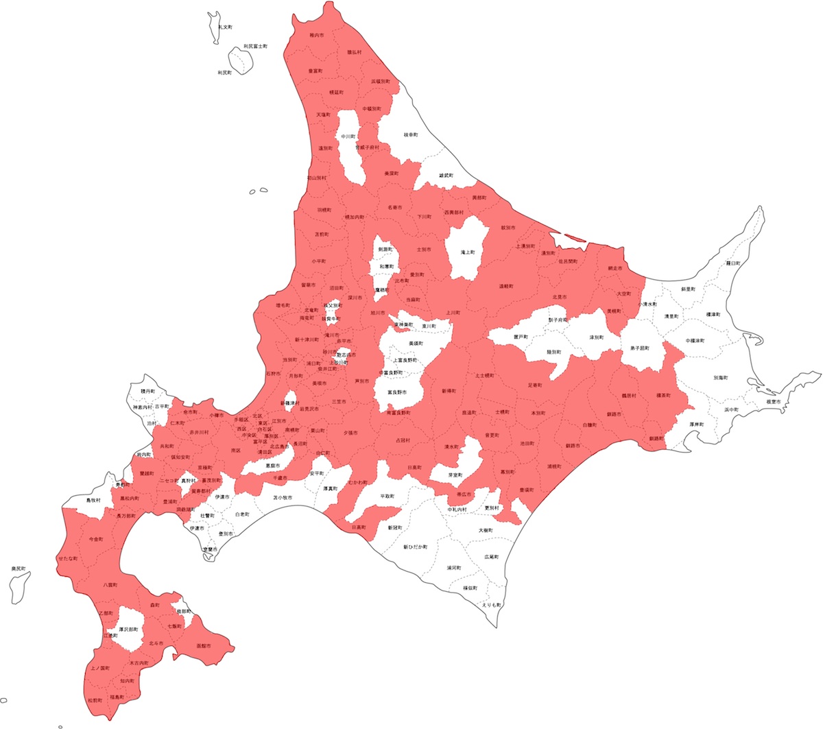 北海道足あと図とは,これまで3年間にわたるネタによって通過した市町村数を赤で塗り分けた図である.