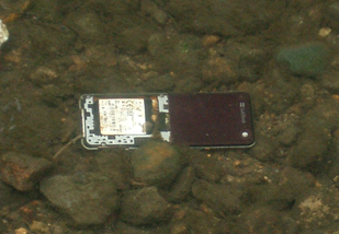 川の中には携帯電話が!(頭の中に爆弾が!的な言い方でwww)