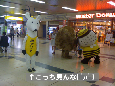 地元ローカル民法局のキャラクター達に並ぶも・・・